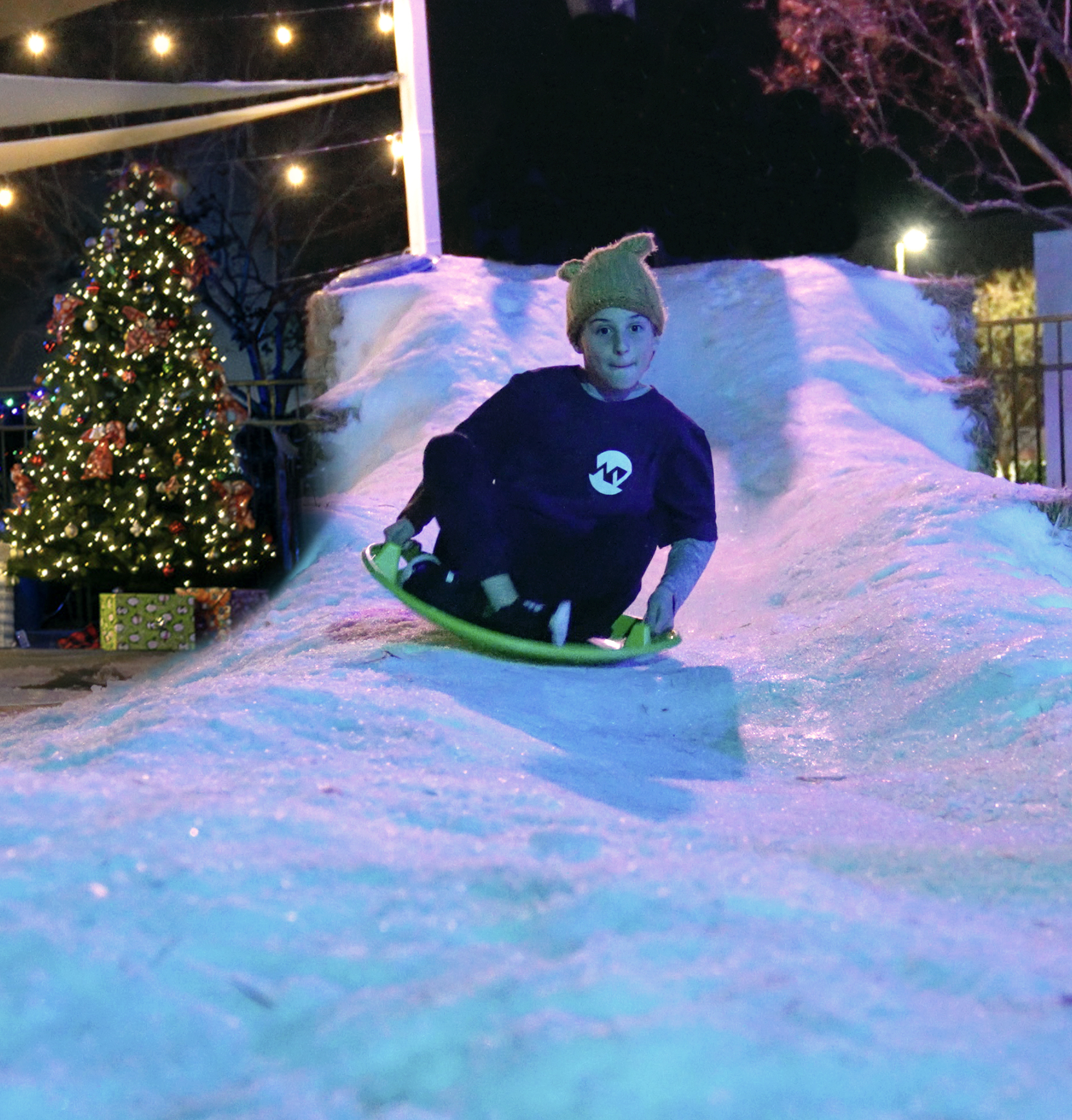 Enjoy sledding on real snow, nightly live music, thousands of lights,